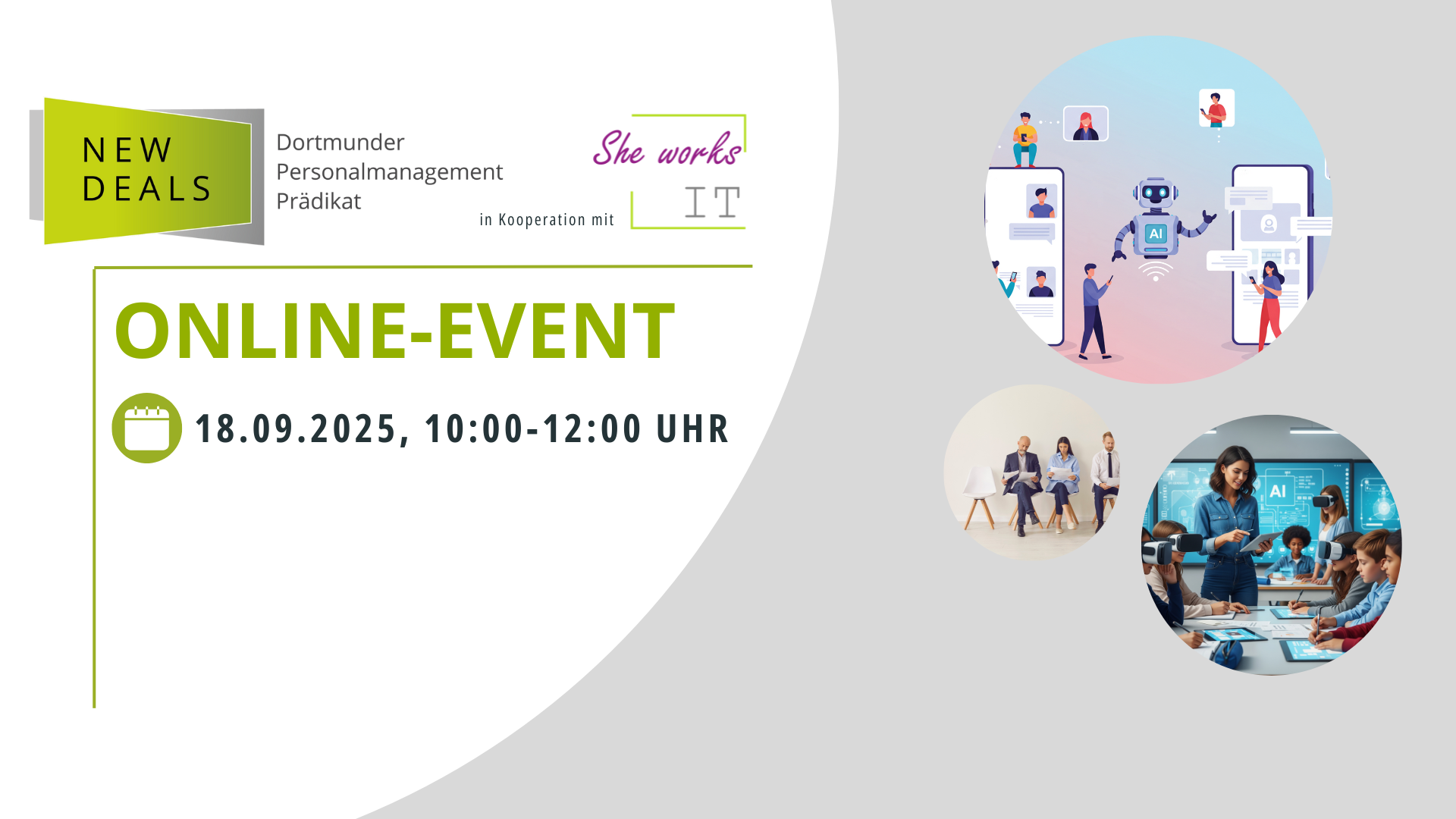 Fachkräftemangel und digitale Trends verändern das Recruiting tiefgreifend. Unternehmen stehen vor der Aufgabe, Prozesse effizient zu gestalten und zugleich Fairness zu wahren. Was muss man beachten, wenn man z. B. ein Recruiting-KI-Tool auswählt? Erfahren Sie mehr und diskutieren Sie digital über Zoom mit am 18.09.2025.